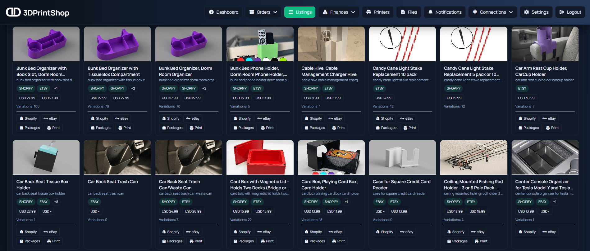 3DPrintShop combines marketplace sync, production planning, printer control, shipping, listing expansion, financials, and alerts into one licensable operating system.